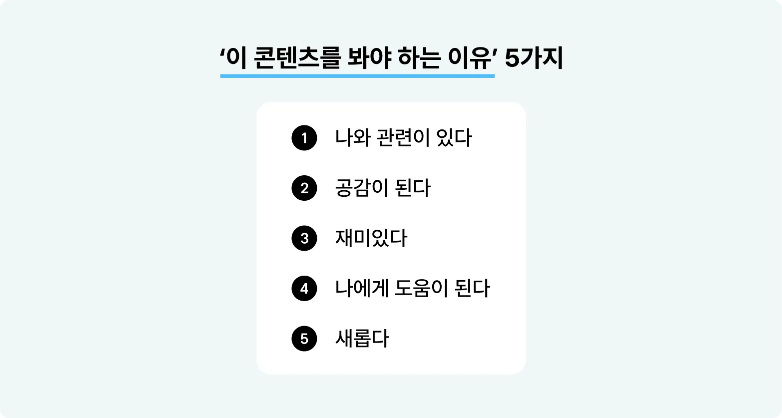 여기까지 읽었는데도 ‘그래서 그거 어떻게 해야 하는 건데…’ 라는 생각이 든다고요? 그럴 줄 알고 여러분들을 위해 그간의 경험을 녹여 ‘이 콘텐츠를 봐야 하는 이유’ 5가지를 딱 정리해 왔어요.