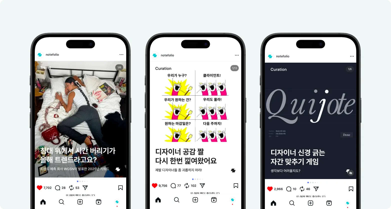 인스타그램의 경우 이 방식으로, 실무자인 에디터 한 명과 디렉터인 저, 단 두 명이서 채널을 키워가고 있어요. 짧은 시간 내에 팔로워 두 배를 만들었지만, 아직 갈 길은 멀다고 생각해요. 앞으로도 또다른 크고 작은 실험들을 이어나가보려 합니다. 앞으로의 노트폴리오도 기대해 주세요!