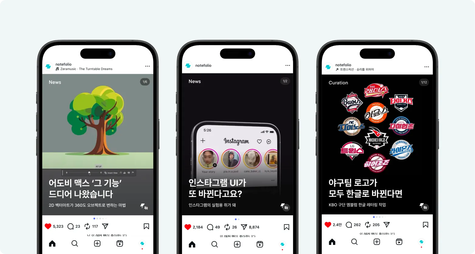 야구팀 로고가 모두 한글로 바뀐다면: KBO 구단 엠블럼을 한글 로고로 바꾼 작업물을 소개한 콘텐츠인데요. 야구 팬들이 워낙 많다보니, ‘내가 응원하는 팀 로고, 한글 버전도 예쁘잖아?’라는 생각이 들게 해 높은 반응을 이끌어냈어요.