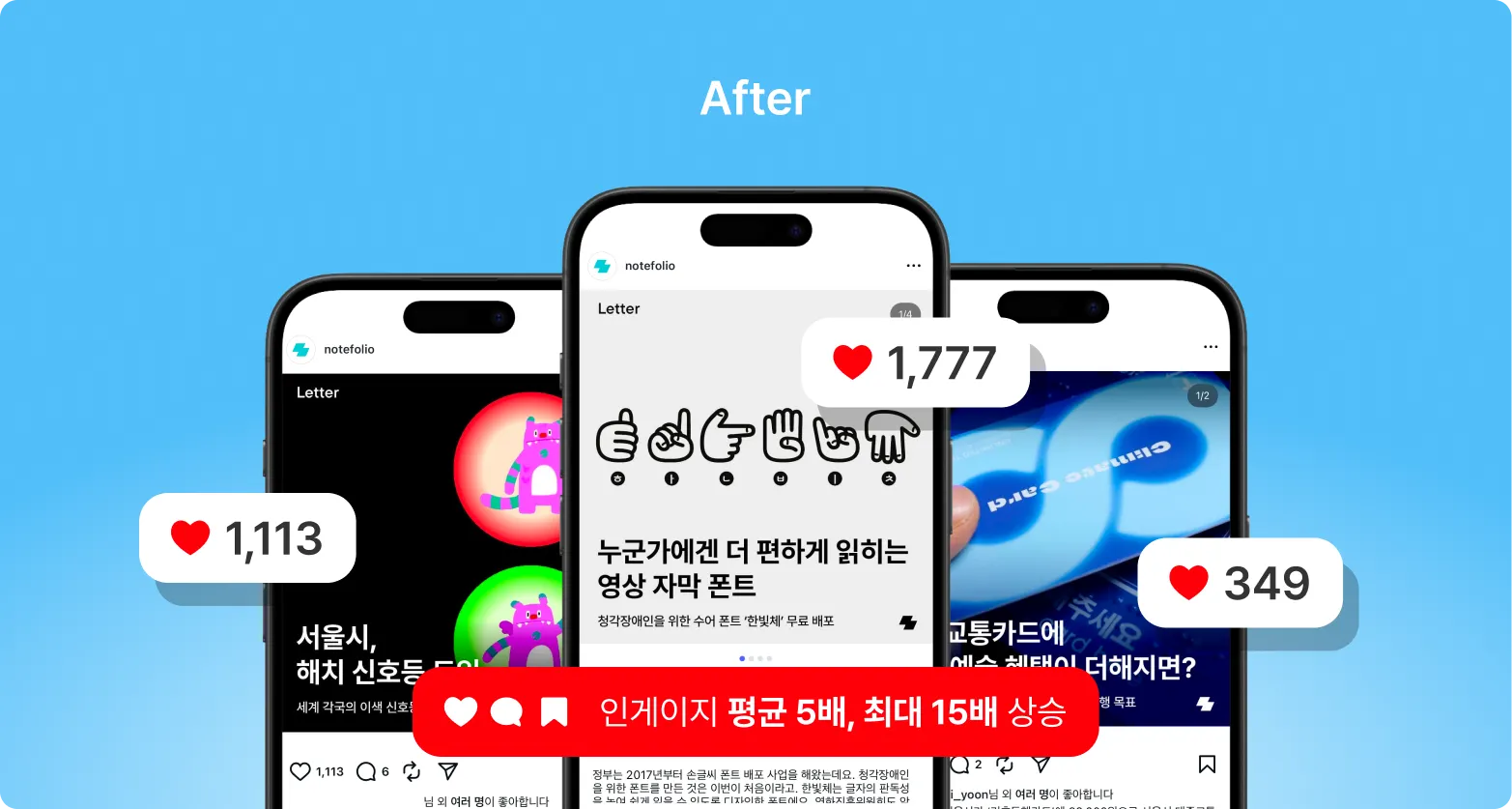 콘텐츠마다 편차는 있었지만, 평균 5배, 최대 15배로 인게이지먼트가 확 올랐어요.